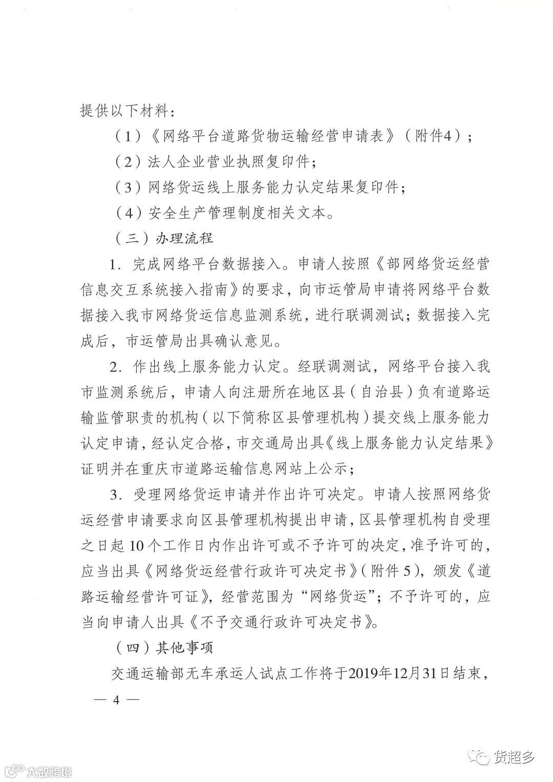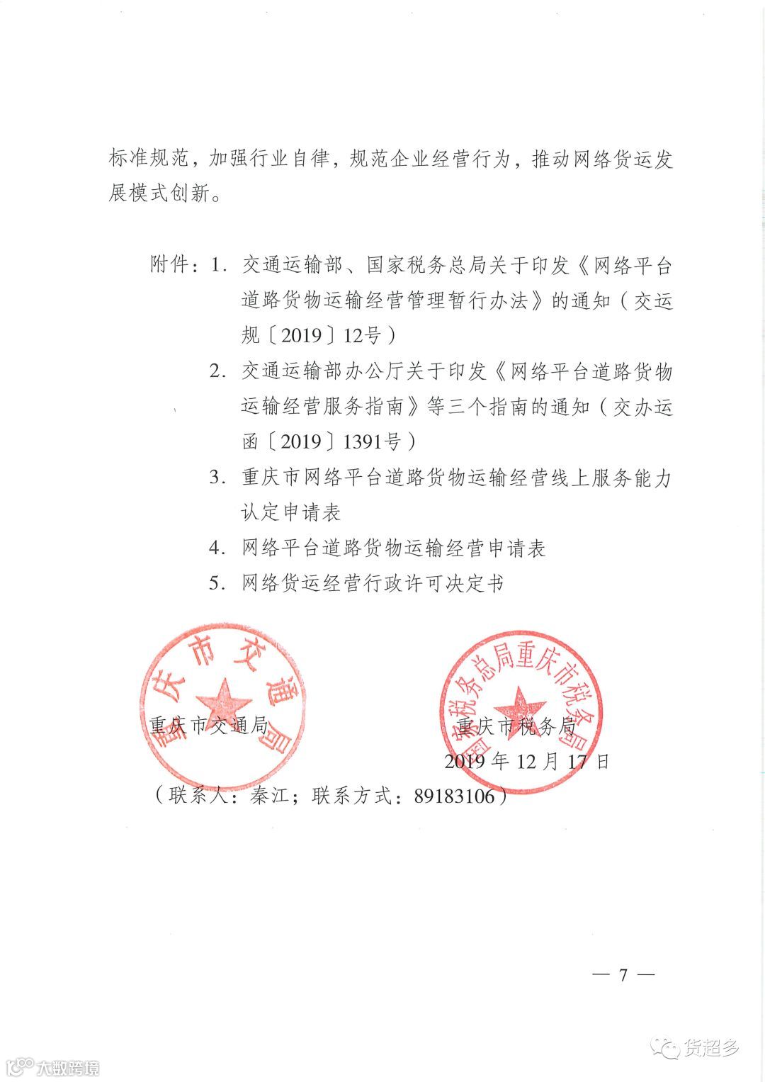 2019年12月17日,重庆交通运输局印发关于开展网络平台道路货物运输经营管理工作的通知。