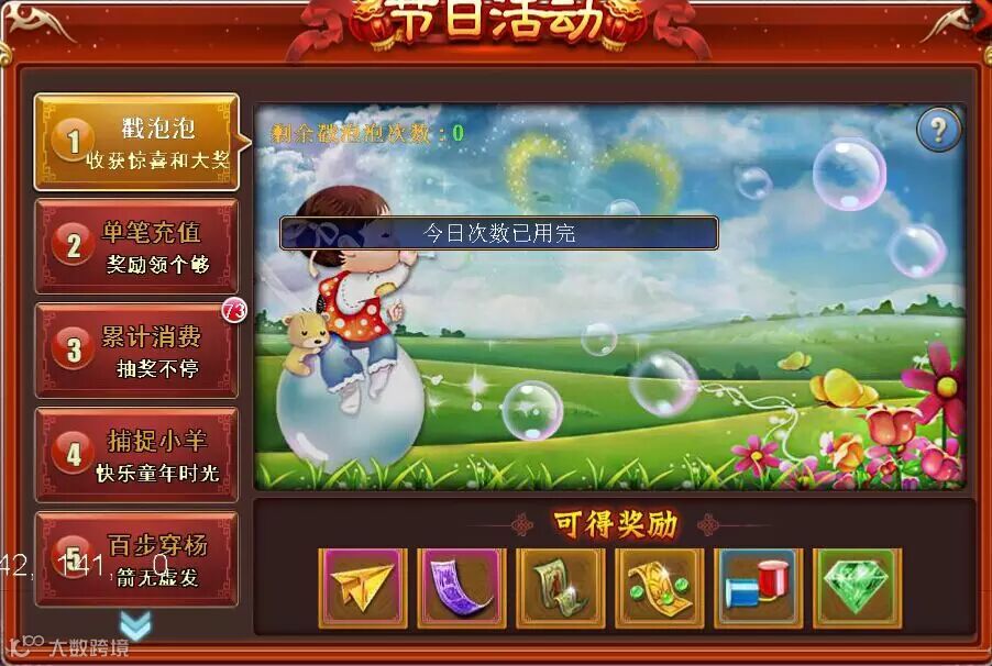 ◆每个仙友每天有3次免费捕羊机会,免费机会使用完之后,再次捕羊需要花费元宝