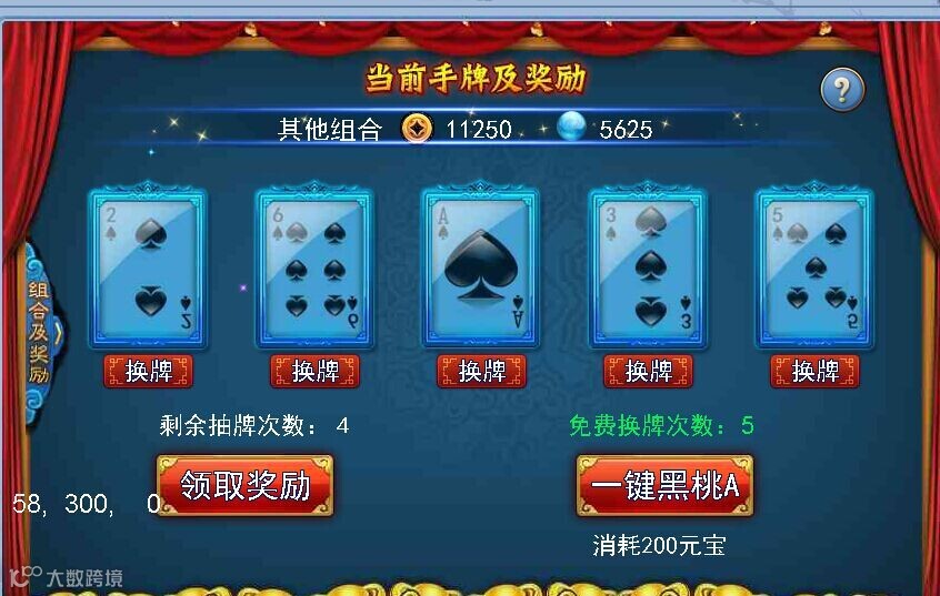 4)抽完牌后,可通过元宝换牌得到更高奖励的组合;花费的元宝少量递增,但绝不超过20元宝;