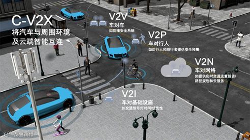 车联网就好像是一个包含有车、交通信号灯等路边设施、行人和云端参与的微信群,群里的每一个参与者都可以将自身的信息与其他参与者即时分享,实现彼此间位置和驾驶意图的识别,对信号灯等交通信息的告知等,协助群内的车辆对道路的感知,支撑车辆自动化。