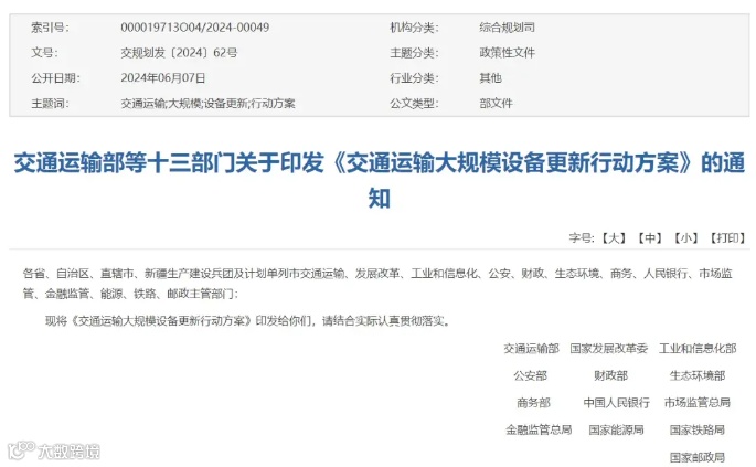 近日,交通运输部、国家发展改革委、财政部等13部门联合印发《交通运输大规模设备更新行动方案》,其中要求加快淘汰更新国三及以下标准营运类柴油货车,提前淘汰更新国四标准营运类柴油货车。有序推广新能源营运货车,鼓励有条件的地方,因地制宜研究出台新能源营运货车的通行路权、配套基础设施建设等政策。
