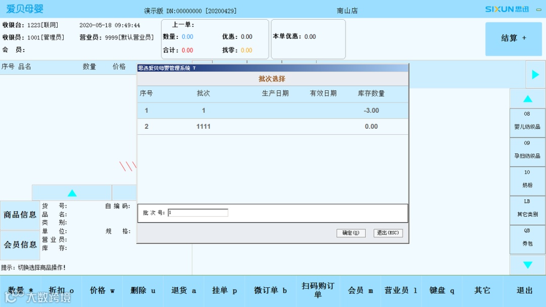 ❖ 前台销售自动弹出批次选择,或可根据批次号输入