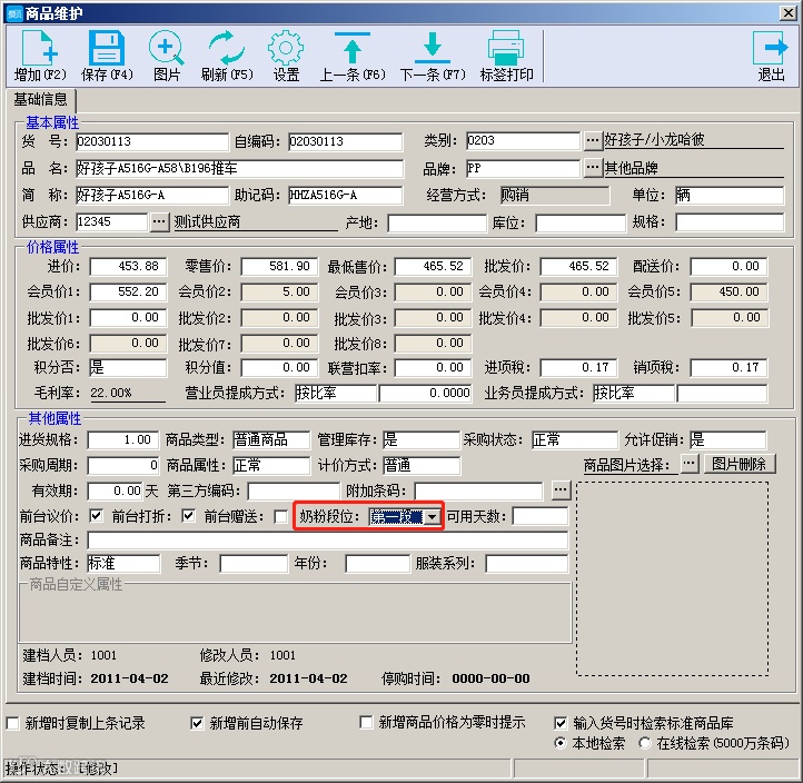 *图为爱贝母婴7设置奶粉段位的图示