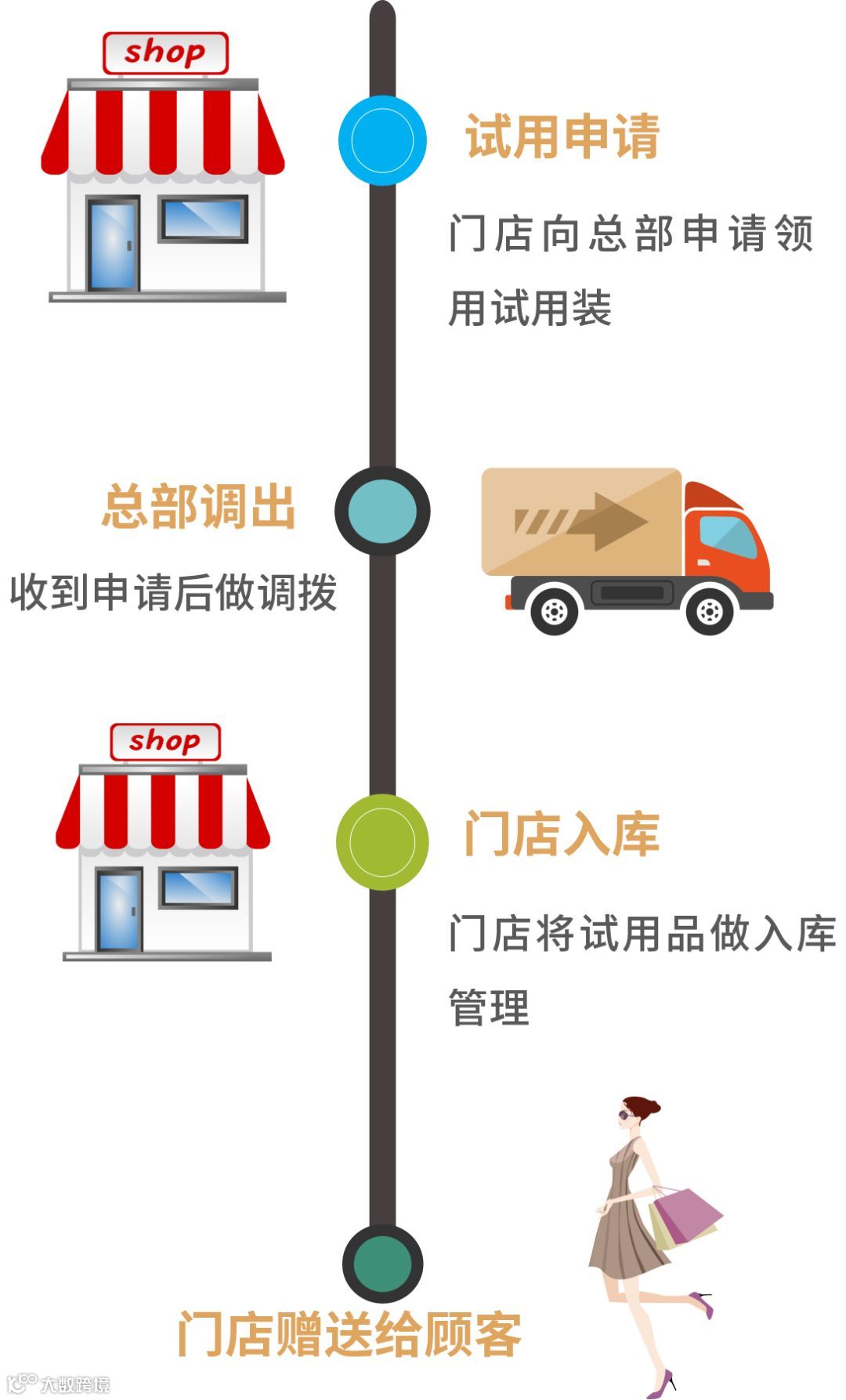 试用品推广给产品、增强用户体验;试用品流程化管理,保证合理使用。