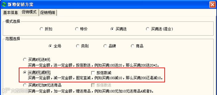 促销方案:新增促销方案并指定促销范围