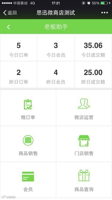 通过微信公众平台,管理者无需安装客户端,只需用手机关注商家公众号,并在微商店后台绑定账号,即可实时接收新订单提醒、助手异常信息提醒,查询商品销售、门店销售、微店运营、会员分析等各项数据。