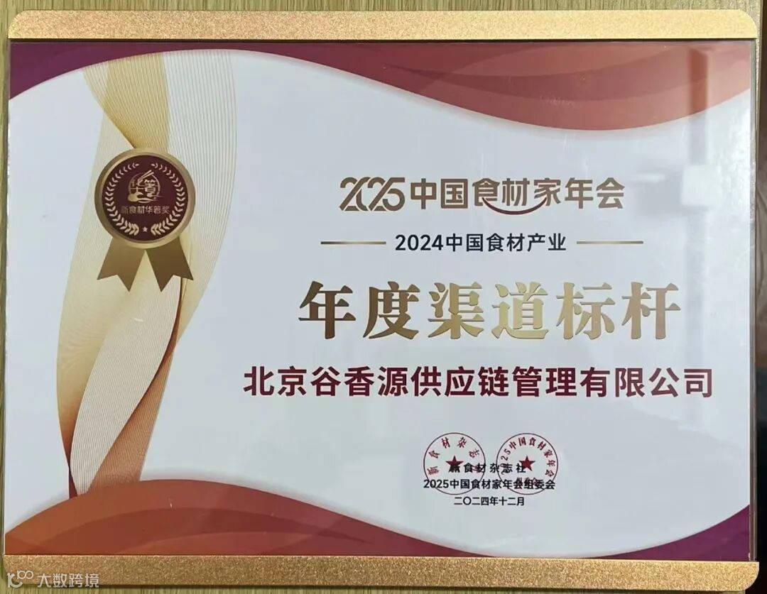 北京谷香源供应链管理有限公司凭借其在食材产业领域的卓越贡献和创新能力,荣获了2024中国食材产业·年度渠道标杆奖。