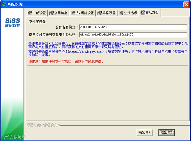 step5:支付宝审核。支付宝审核签约订单。商家设置思迅软件中支付宝的合作伙伴ID和交易安全校验码,即可开通使用。
