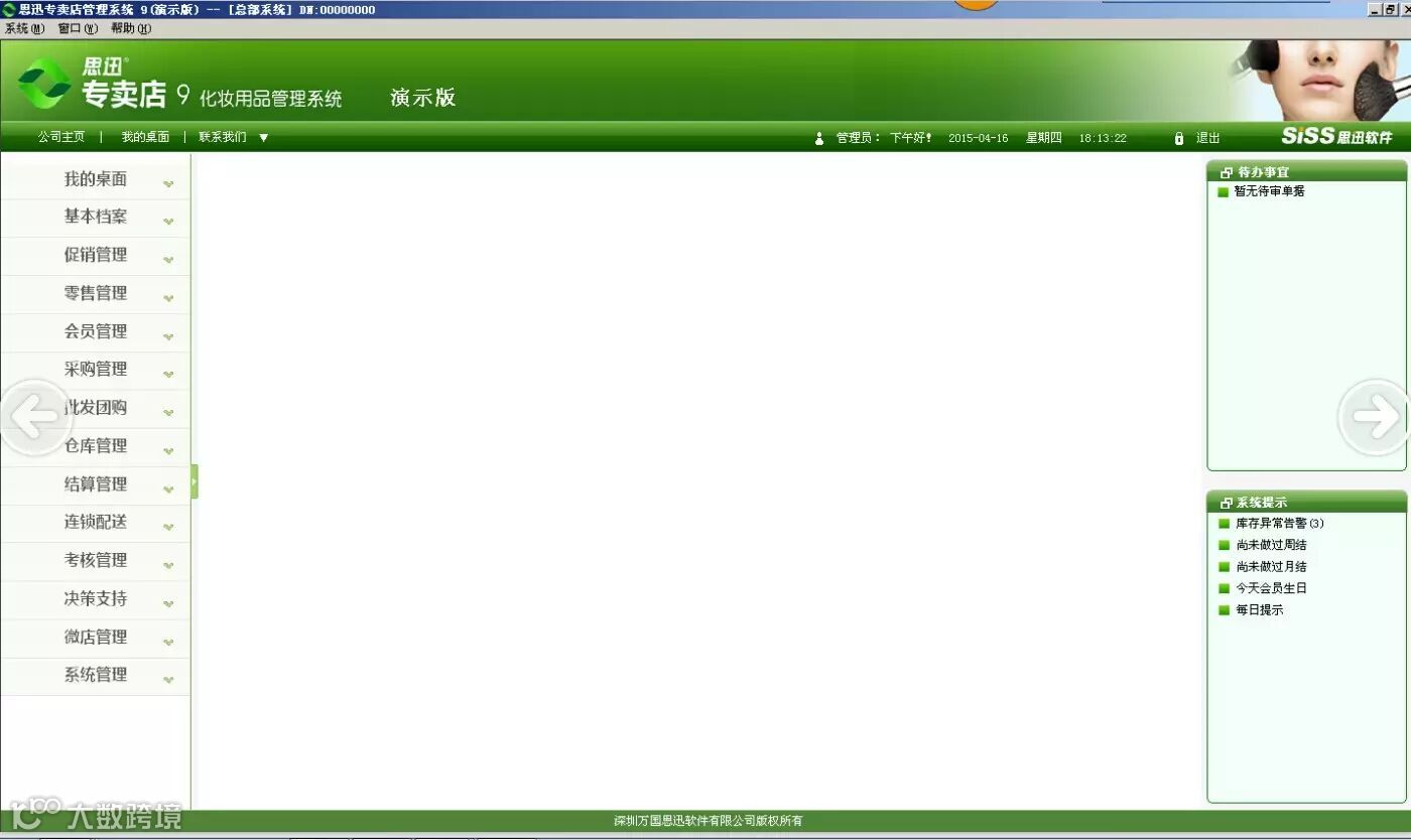 思迅专卖店连锁管理系统是思迅软件在多年行业经验的基础上,专门针对品牌专卖连锁行业开发的现代化信息管理系统。它重点突出了品牌专卖连锁行业个性经、特色化的管理需求,实现了“总部集中式统一管理、门店独立销售及核算、总部与各门间实时共享数据,多层管理架构、多门店类型连锁”的经营模式。