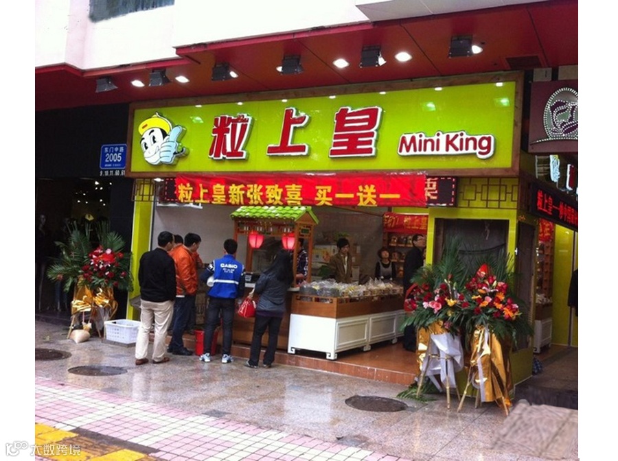 1.“粒上皇”炒货干果专卖店,门店规模:152家,每年以100家速度增长