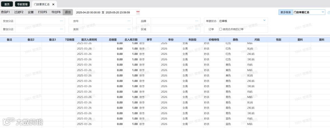 总部可实时查看各门店要货汇总数量,并关联最近销量、总销量、入库次数等数据,实现供应链资源动态调配,减少库存积压与缺货风险。