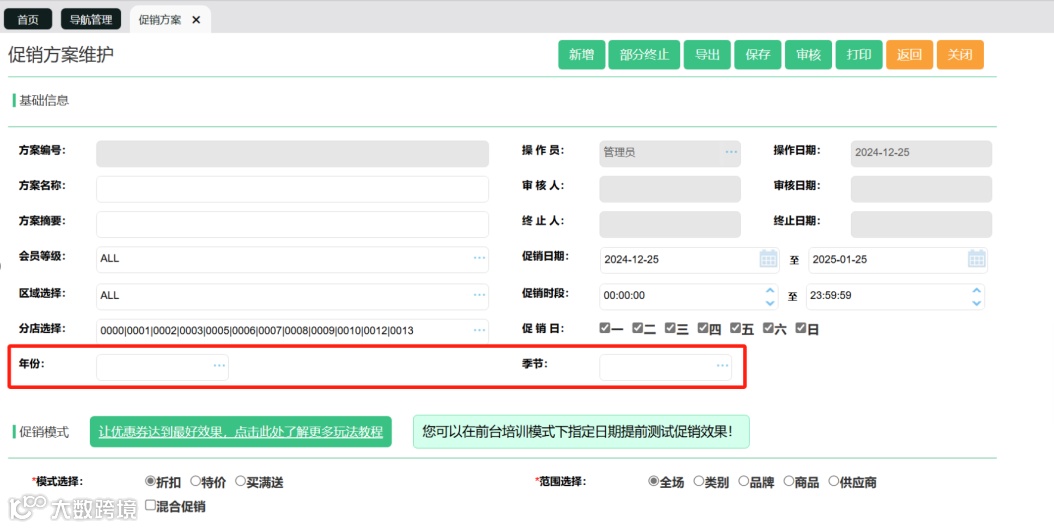 支持按时间段、每周固定周期设置促销,可针对全场、类别、品牌、单一商品或「混合类别 + 品牌」组合进行促销,满足新品上市、节日营销、季末清仓等多样化营销场景。