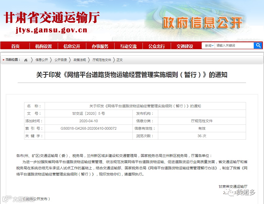 ✪【甘肃】转发网络货运暂行办法!按规定抵扣进项税额