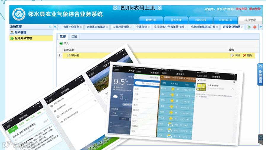 目前,邻水县“三农”气象为农服务平台已于26日正式投入使用,发挥气象为农服务效益。该“三农”平台项目验收成功可谓意义重大,一方面充分肯定了华泰德丰在气象为农服务方面取得的工作成绩;另一方面为华泰德丰进入县级“三农”气象为农服务市场打下了良好基础。今后,华泰德丰将继续砥砺前行,充分发挥在气象为农社会化服务行业积累的经验优势,全力以赴协助邻水县气象局健全农业气象服务体系和农村气象灾害防御体系,将气象为农服务推进和落实到更多地区的“三农”工作中去,为农业生产和发展提供优质的气象保障服务。