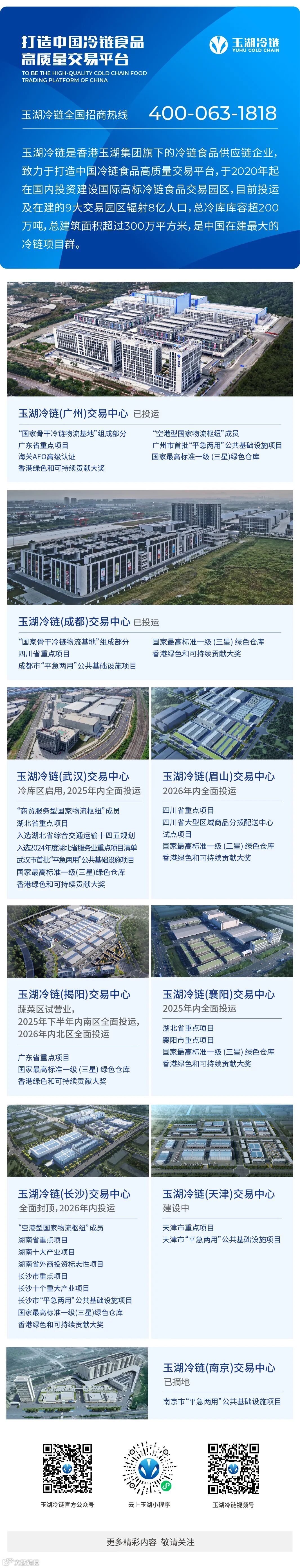 今年6月,国家发展改革委发布新一批国家骨干冷链物流基地建设名单,玉湖冷链(广州)交易中心(以下简称“玉湖冷链广州园区”)被纳入其中。据发改委官网称,本次公布的国家骨干物流基地建设名单,在健全冷链物流网络、满足居民消费需求、引领冷链物流数字化绿色化转型发展等方面具有示范带动作用。这一结果不仅是企业阶段性成果,也折射出中国冷链物流体系建设的深层变革:从规模扩张转向功能升级,从企业行为升维至国家基础设施能力的系统性构建。