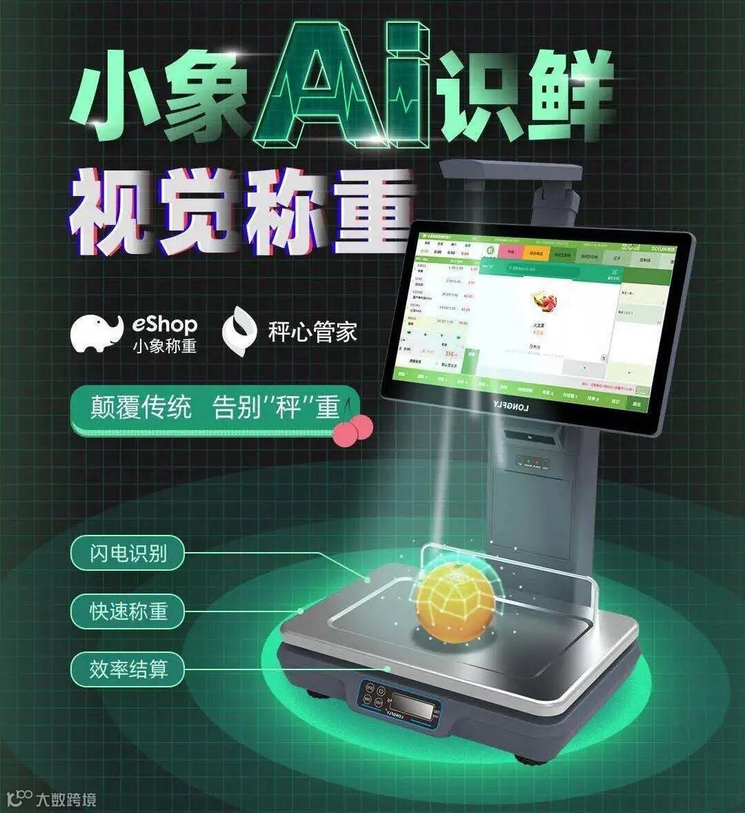 小象Ai识鲜功能,通过AI物品识别技术将PC秤、收银POS结合,为生鲜销售“减负”。
