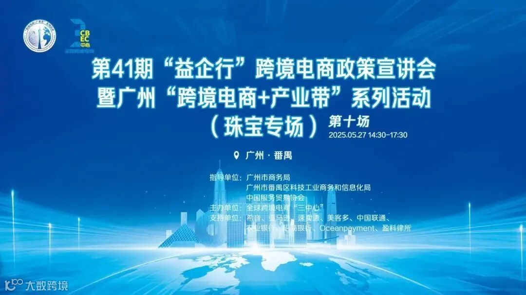 5月27日,由广州市商务局指导的第 41 期“益企行”跨境电商政策宣讲会暨广州‘跨境电商 + 产业带’珠宝专场活动,在钻汇大厦圆满举办。钻汇集团作为珠宝业界的领军企业以及番禺区珠宝服装产业链的链主单位,本次联动了全球跨境电商“三中心”,汇聚美客多、亚马逊、SHEIN等头部平台,与100余家珠宝企业共探 “跨境电商+珠宝产业”融合新路径。