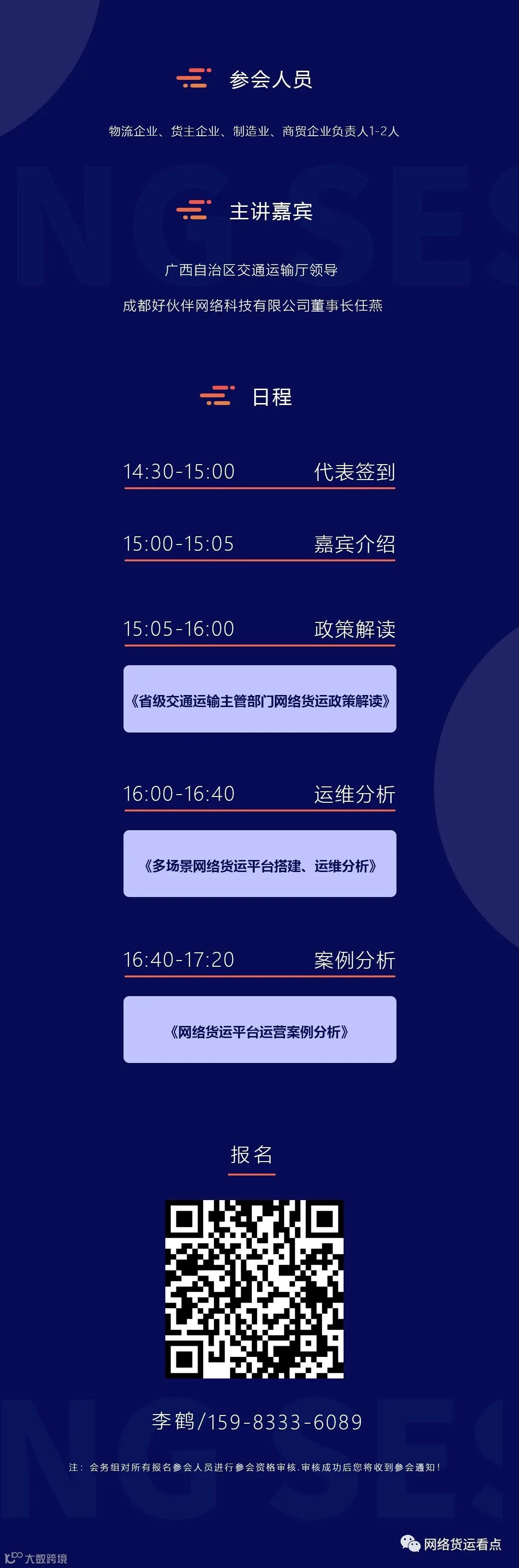 今年以来,“网络货运平台”在供应和能力整合、降低物流成本等方面发挥了重要作用。随着《网络平台道路货物运输经营管理暂行办法》政策实施,进一步激发货运行业的创新和蓬勃发展,加快促进货运行业新业态规范健康发展。协会将围绕“抓住信息化发展历史机遇,凝心聚力共建交通强国”展开探讨,届时邀请贵司共同参与。