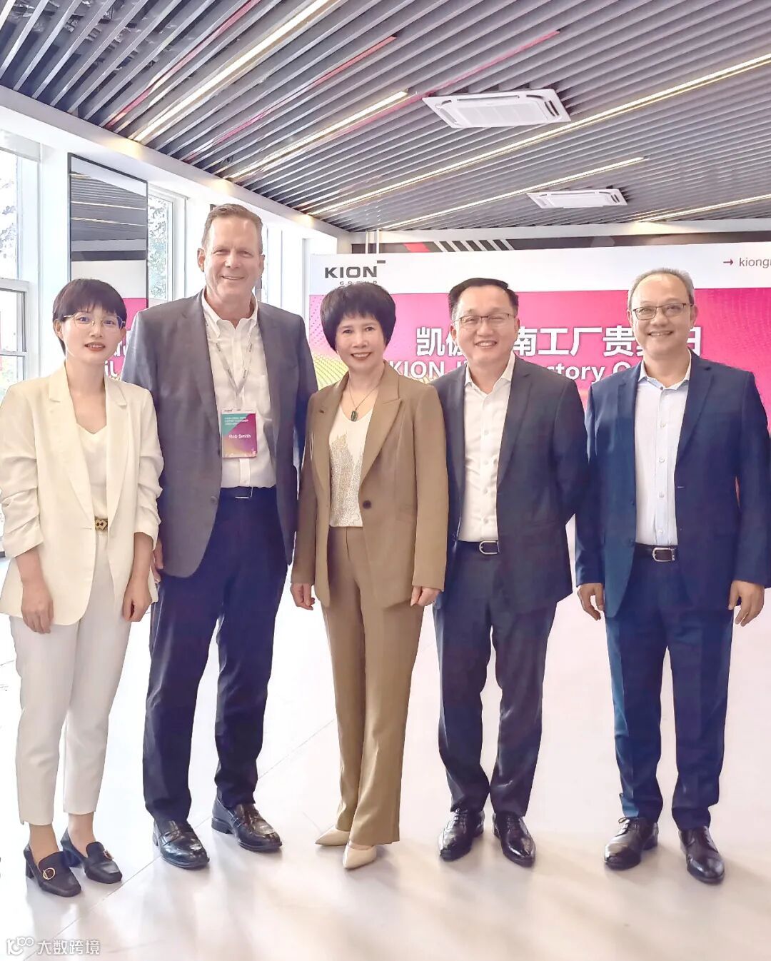 玉湖冷链董事、中物联冷链委副会长、ISO/TC315冷链物流中国代表团专家罗碧妆,凯傲集团首席执行官罗布·史密斯(Rob Smith),凯傲集团董事兼凯傲亚太及美洲区总裁郭进鹏,凯傲中国销售和服务高级副总裁谢德安出席活动。