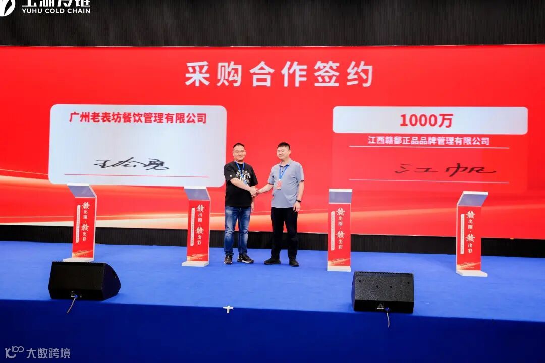 1、亿元大单引爆现场:广东潮汇水产有限公司、广州惠聚鲜供应链科技有限公司、广州万岛船夫国际贸易有限公司、泽其鲜食(广东)科技有限公司、领鲜供应链科技有限公司、广州市花都区东名海鲜批发商行、河南牛匠食品、南昌农业发展集团有限公司广州分公司、广州老表坊餐饮管理有限公司、江西赣鄱正品品牌管理有限公司等大湾区头部供应链企业现场签约超1.54亿元,涵盖冻品水产、乌鸡、麻鸭、甲鱼、米面粮油等品类,其中江西馆企业签约占比达68%。