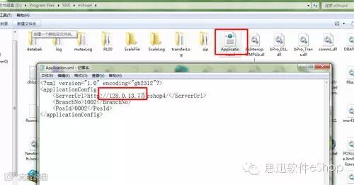 IP或者域名发生变化,前台需要在前台程序的安装目录,一般为“D:\Program Files\SISS\eShop4”中将Application.xml 使用记事本打开,修改 修改原来的域名或IP为新的即可,如图: