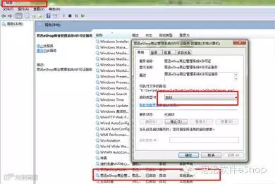 在计算机管理-----服务中将思迅eShop许可证服务设定为自动启动,如图