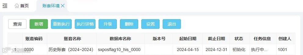备份数据库后,在后台系统模块的【账套环境】功能中点击“新增”,根据账套初始化向导创建新的数据库账套环境,将不常用的往年数据转存至历史账套。