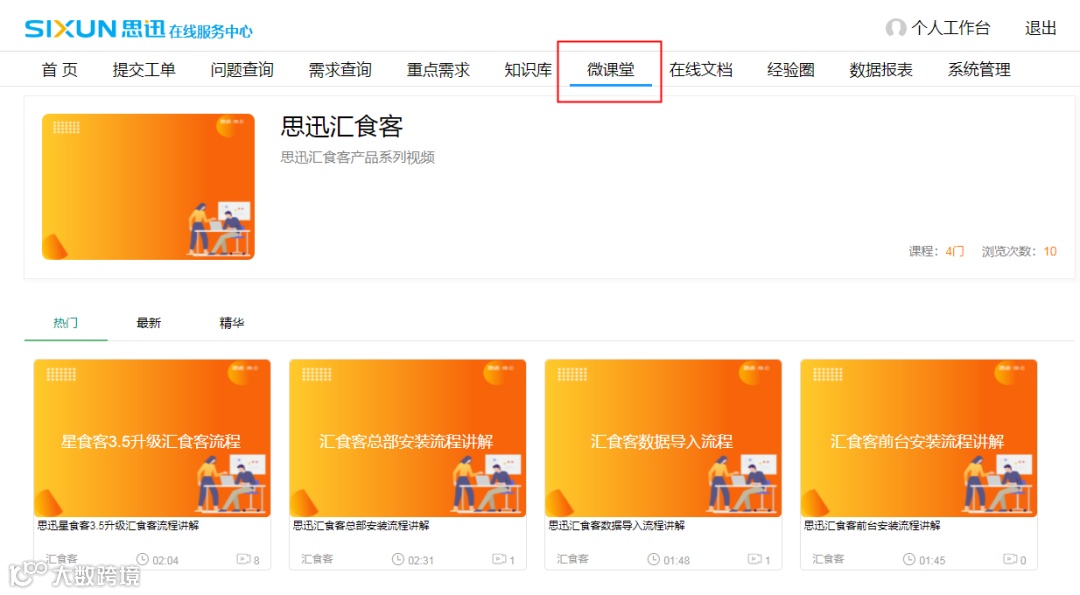 现在我们又针对思迅汇食客专门推出视频合集,目前已经包含了前后台安装、基础数据导入、星食客3.5升汇食客等新手必看教程,后续还会加入微餐厅相关知识详解视频,更多精彩持续更新中......