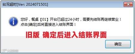 优化提示和结账逻辑,仅做提示超过24小时,点击确认后可继续对桌台操作而不是只能结账。