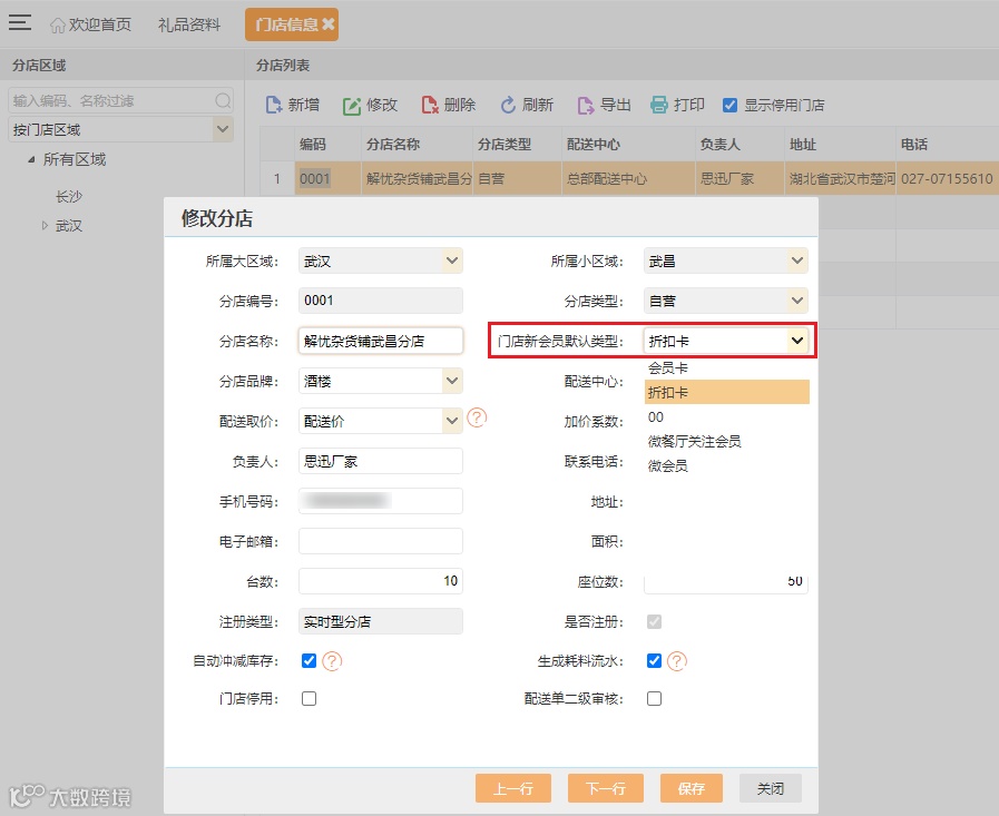 汇食客总部系统--营运管理--门店信息,新增门店新会员默认类型指定功能,支持微餐厅3在门店扫码注册会员到门店指定的会员等级中,如未设置等级则注册到默认的微会员(编码WX)等级中,操作更便捷!