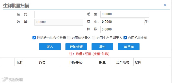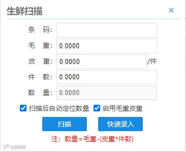 如遇生鲜商品需要录入毛重、皮重、件数等信息,可开启此参数。