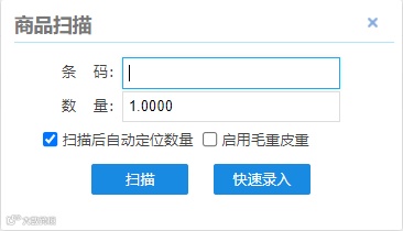 商家做单时,如果遇到需要使用扫描枪将商品在电脑前过机来录入的情况,可直接通过单据中的【扫描】和【快速录入】两种方式来提高制单人员的录入效率。