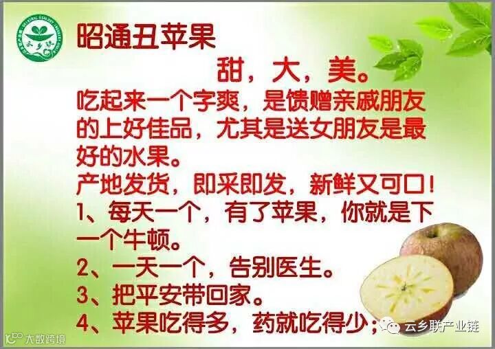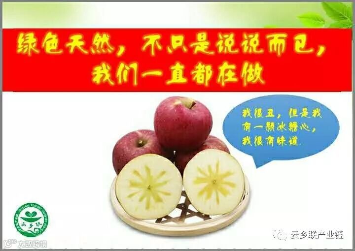 高山果园,远离城市,自然生长,不打蜡、不打药、带皮吃,甜脆味鲜!其它品种的苹果都有用美颜的外表,而它却以丑出名,不规则的果型,略带黄色的果斑,但是皮薄柔嫩,汁水充盈,脆,甜,香于一身!