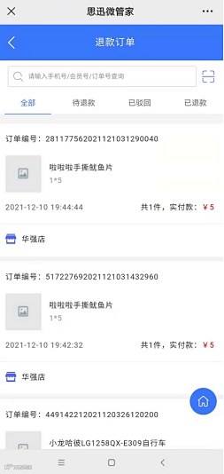 退款订单:支持按全部、待退款、已退款和已驳回状态查看退款订单。