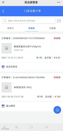 门店自提订单:支持按待支付、待核销和已核销状态查看门店自提订单。