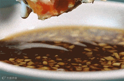 蘸上早已准备好的醋汁,放进嘴里,