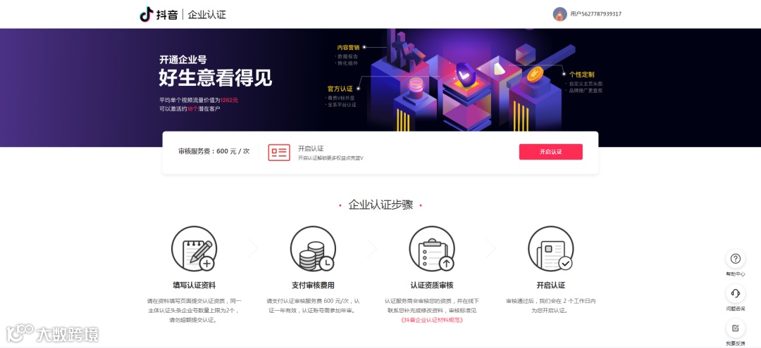 步骤一 开通抖音企业号,并且完成蓝V认证。