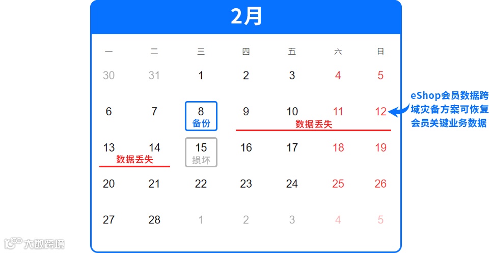 举个例子:王老板的门店会定期进行数据库备份,最近一次备份时间在2月8日。然而数据库不幸在2月15日受损导致数据丢失。