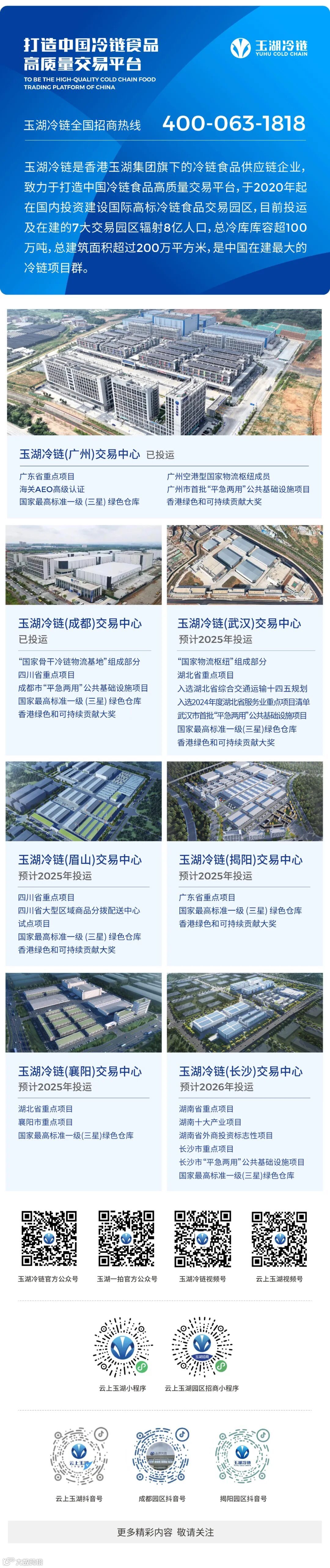 )交易中心也于同年11月启动试运营。随着南京项目的落地,玉湖冷链将进一步巩固其在国内冷链物流领域的领先地位,为区域经济协同发展和国家冷链供应链体系建设贡献更大力量。