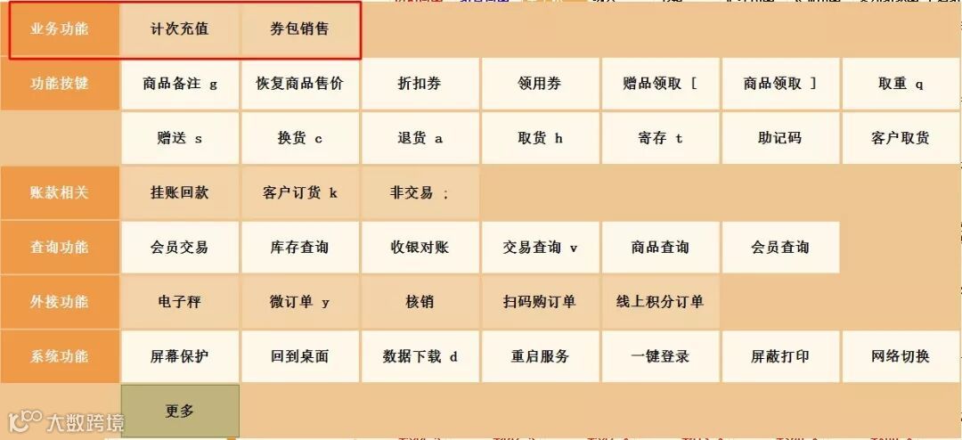 如上图,将对应的勾去掉好,在前台即可不做显示。上图中“业务功能”只勾选了2个,那么在销售界面就会只显示我们所勾选的项:
