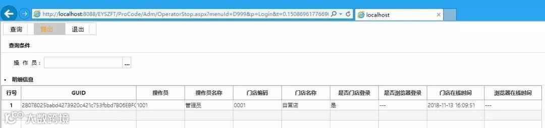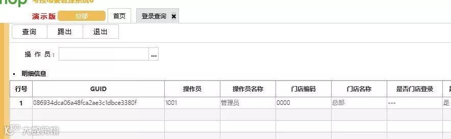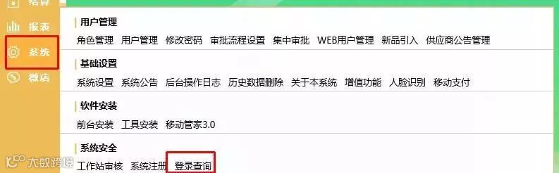 使用1001先进入软件后台,然后在系统—系统安全—登陆查询点击进入,效果如下: