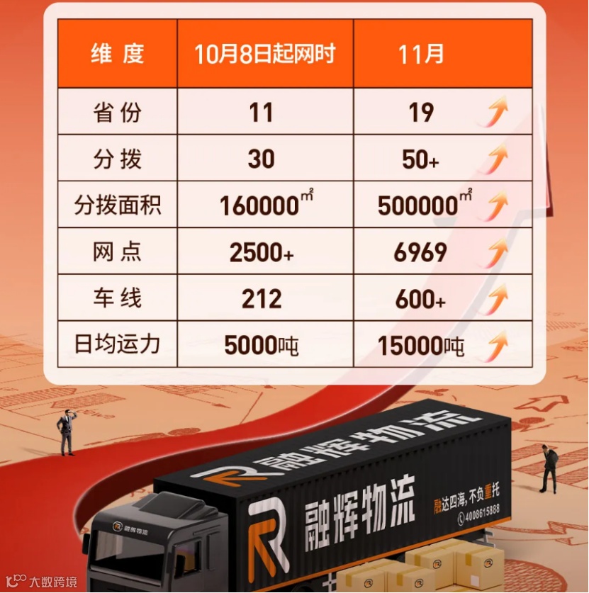 目前来看,融辉物流在网络覆盖、分拨建设、网点数量、车线数量、时效和服务等方面均取得了一定程度的进展。