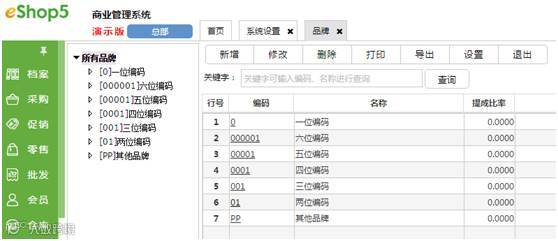 增加“品牌”档案六位编码管理