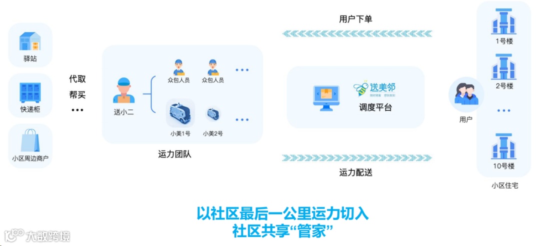 不可否认的是,没有任何一个三方驿站不需要更适合自己的流量入口,以送美邻为首的社区配送平台把商户和业主跑通之后,做到了真正意义上的用户筛选,成为驿站开垦金矿的铲子,为其拓宽服务边界提供决策参考。