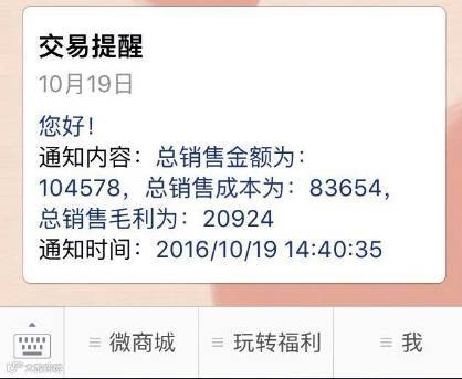 决策者无需注册为微商店会员,只需要关注微商店公众号,便可通过微信接收门店营业数据;