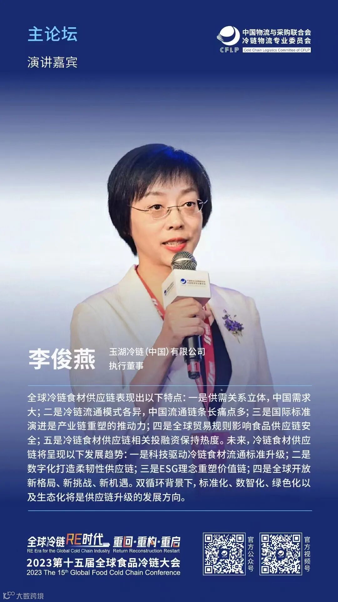 在随后的主论坛环节,玉湖冷链董事李俊燕发表了《冷链食材全球供应链的现状和趋势》主题演讲。