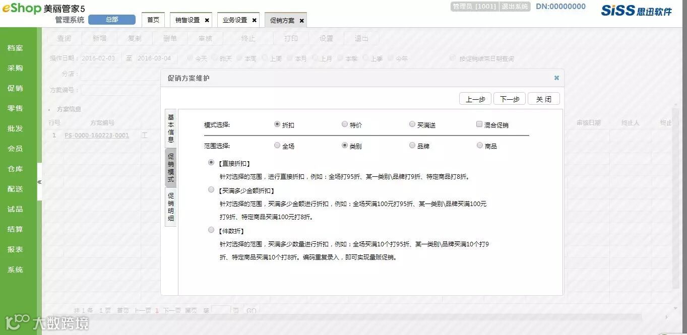 系统采用向导式的设置方案,配以通俗易懂的文字说明,使促销方案的设计过程非常直观明了。
