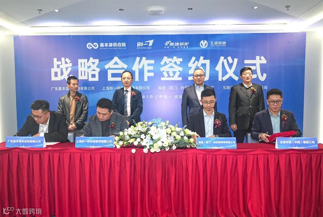 1月12日,玉湖冷链(中国)有限公司(以下简称「玉湖冷链」)与唯捷(厦门)供应链管理有限公司(以下简称「唯捷城配」)、广东嘉丰源供应链有限公司(以下简称「嘉丰源供应链」)、上海则一供应链管理有限公司(以下简称「则一供应链」)战略合作框架协议签约仪式在深圳玉湖冷链商务中心举行。