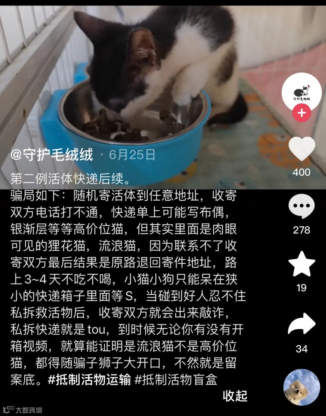 一些快递公司纵容,也使得活体寄递事件变得愈加猖獗,甚至还出现过触目惊心的“宠物盲盒”。