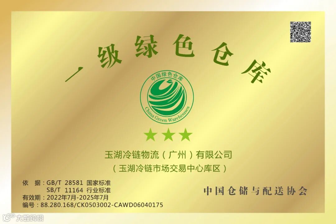近日,中国仓储与配送协会发布公告,玉湖冷链(广州)交易中心获评一级(三星)绿色仓库,这是该领域最高等级资质。